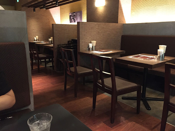暗めの色をベースにした、かなり落ち着いた店内です。
