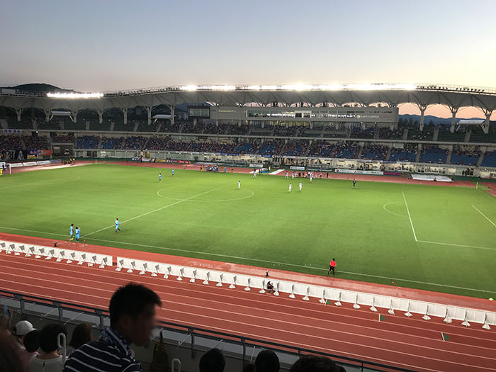 トラスタはサッカー専用スタジアムではありませんが、3階からだと全体が俯瞰できて、試合が見やすいスタジアムです。